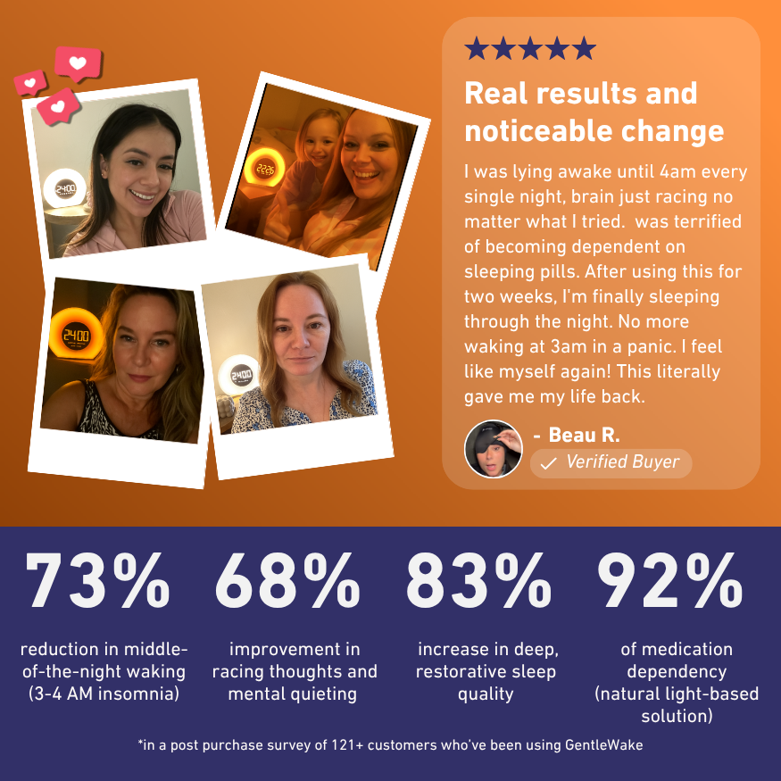 GentleWake is the only clinically-backed light therapy alarm designed specifically for hormonal sleep disruption that resets your circadian rhythm at the source.